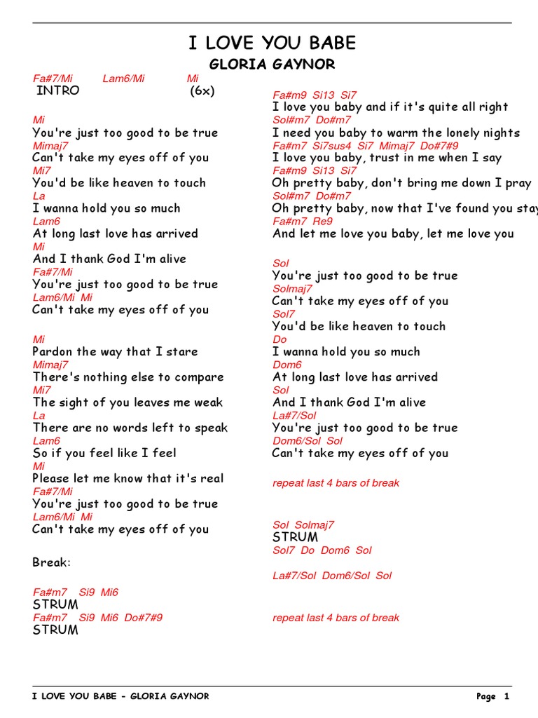 C Bb F Cm Eb Ebm Gm Dm G Ab Db Gb Gbm Chords for Gloria Gaynor - I Love You Baby with song key BPM capo transposer play along with guitar piano ukulele mandolin. I Love You Baby. Essa música já fez muito sucesso na voz de Gloria Gaynor a alguns anos e acredito que que a maioria ainda lembra dela ou já ouviu antesPara mim o amor em su. Trust in me when I say. Gloria Gaynor I Love You Baby Lyrics. Cant take my eyes off of you. 3415 acessos Eu te amo baby Você é bom demais para ser verdade Não consigo tirar meus olhos de você. Youd be like heaven to. I love you baby now that I found you.